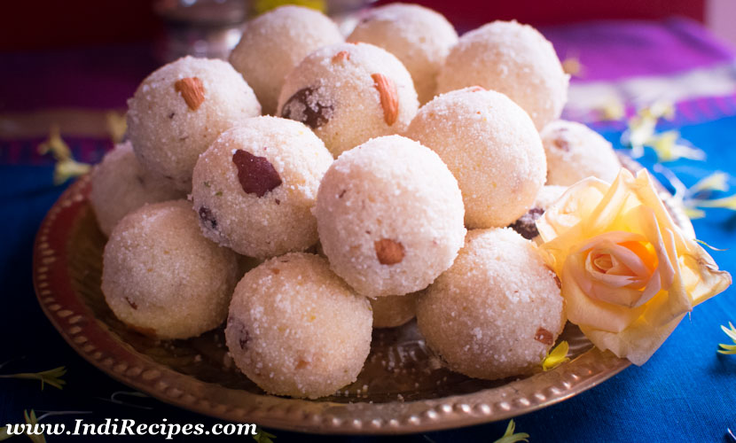 - 2. Pour water incrementally to the gram flour to make thick paste. Then make it thinner with little more water adding in steps. I have used up around 3/4 cup of water which may vary in your case. You need two slotted ladles for making boondi ladoo, so keep it ready.